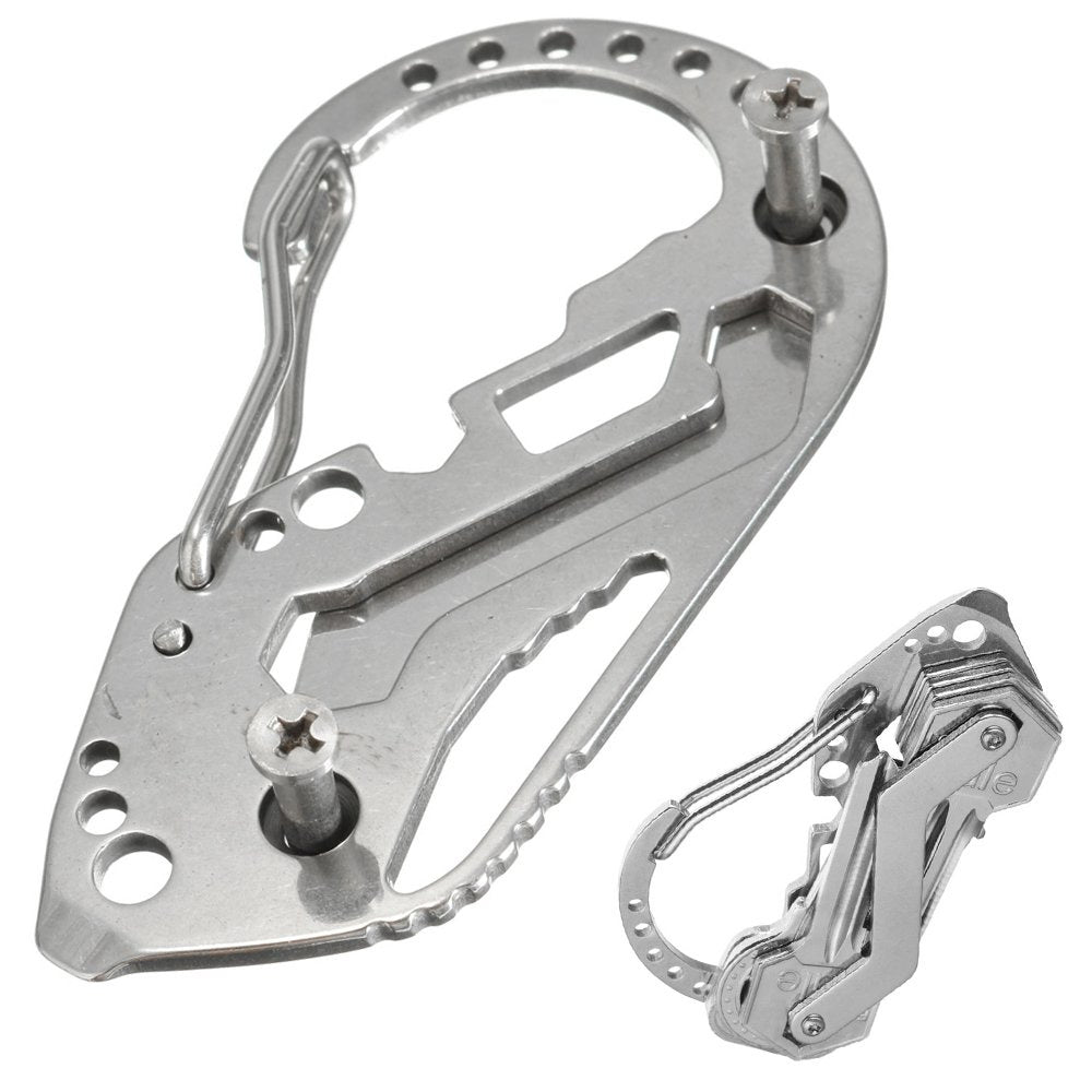 Raktų žiedas karabinas išgyvenimo multitool – tai būtinas ir patogus įrankis, skirtas kiekvienai dienai ir nuotykiams gamtoje. Šis kompaktiškas karabinas lengvai telpa į kišenę, todėl jį galite pasiimti su savimi kur tik einate.