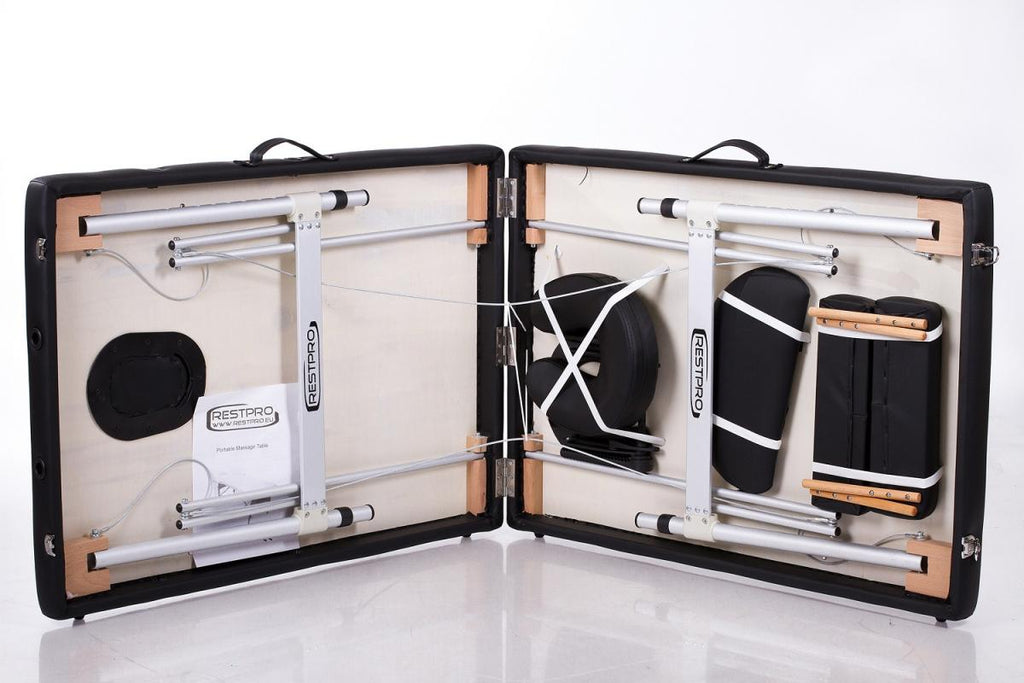 - Masažo stalo pakuotėje yra: RESTPRO® Masažo stalas, nešiojamoji dėžutė, naudotojo vadovėlis.