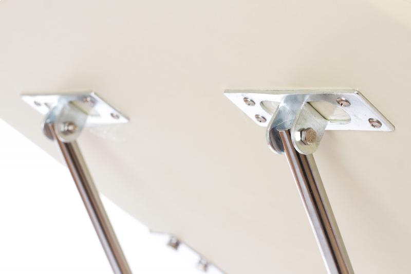 - Matmenys: 185 cm x 63 ~ 85 cm (su rankenomis);