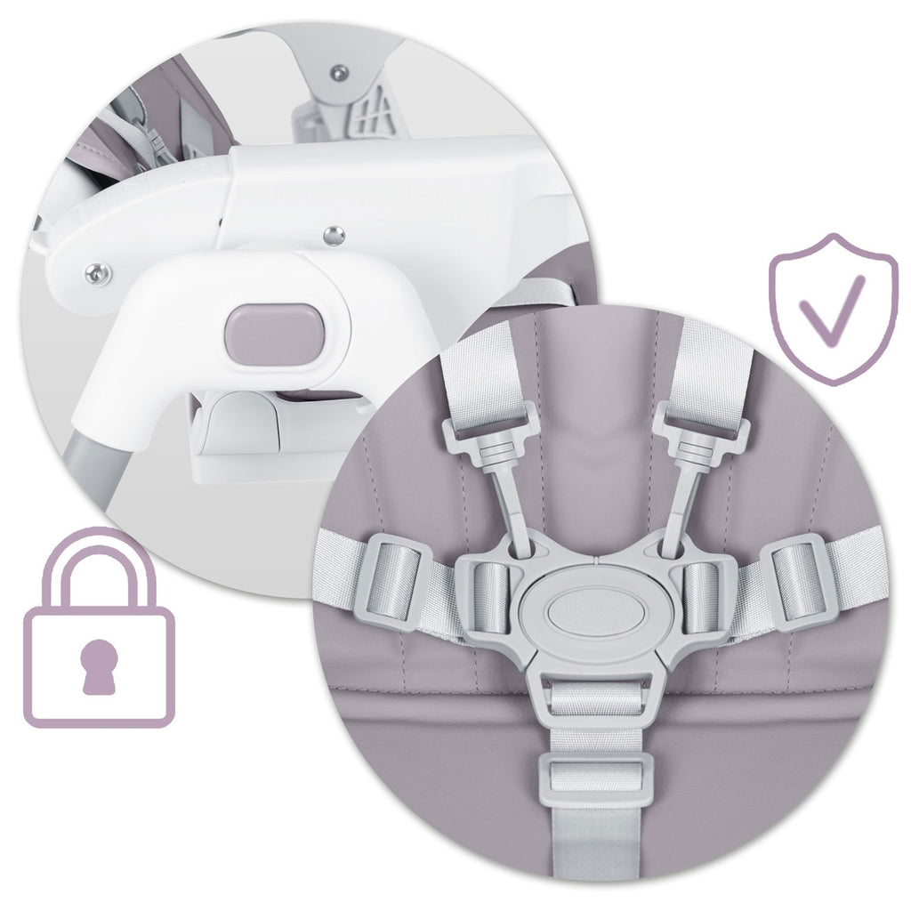 - Saugumo diržai: 5 taškų saugumo diržai, suteikiantys papildomą saugumą mažyliui.