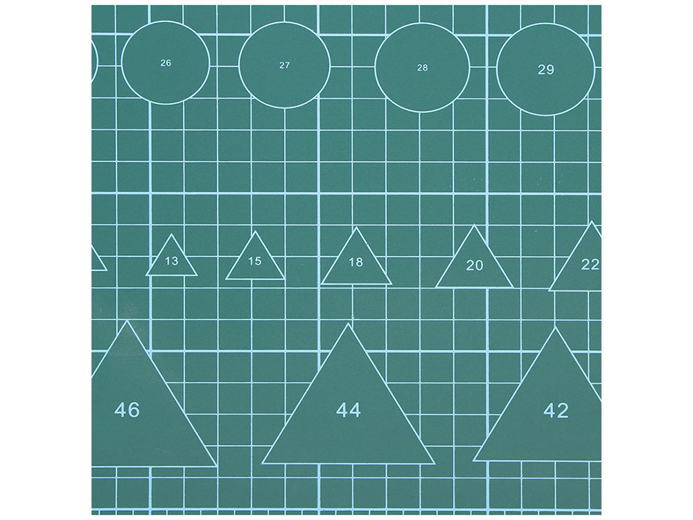 Savaime išsilyginantis pjovimo kilimėlis pagamintas iš specialios medžiagos, kuri iš dalies užsandarina save po įpjovimo ašmenimis. Po pjaustymo jis vis tiek išlieka lygus. Abiejose jo pusėse yra sluoksnis, ant kurio vertikaliai ir horizontaliai atspausdinta centimetrų skalė, pažymėti kampai, matlankai, lygiagrečios linijos ir skaičiai. Kilimėlio negalima lyginti ar paveikti tiesioginiais saulės spinduliais. Norėdami prailginti kilimėlio tarnavimo laiką, jei įmanoma, pjaukite stačiu kampu, o nenaudojamą kilimėlį laikykite nesuvyniotą plokščią. ✅ Produkto kodas: 11351_Z ✅ Aukštos kokybės gamyba ✅ Dvipusis ✅ Savaiminis laistymas ✅ Gerai matoma gradacija ✅ Storis: 3 mm storis ✅ Dydis: 60 cm x 90 cm ✅ Spalva: žalia ☑️ Gamyklinis naujas pjaustymo kilimėlis ☑️ Folijos pakuotė
