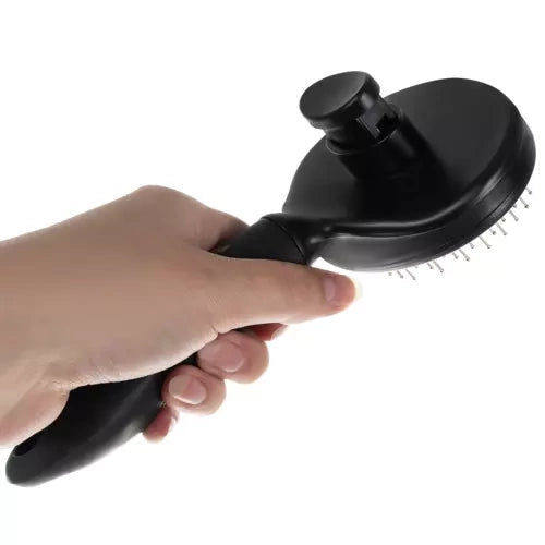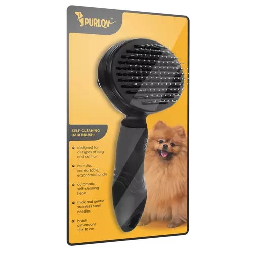- SAVIVALYMAS – šepetėlis yra savaime išsivalantis, dėl patogaus mygtuko efektyviai ir greitai pašalina ant adatų įstrigusius plaukus. Tai labai patogus sprendimas šukuojant savo augintinį, nes šukuojant nereikia traukti kailio, tiesiog naudokite patogų mygtuką ir plaukai atsiras savaime.