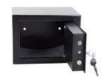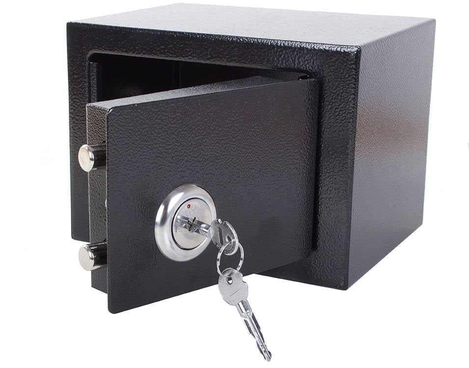 Tvirtas namų seifas užtikrina saugumą. Dėl storų sienelių ir tvirtų durų jis tinka vertingiems daiktams laikyti namuose ir biure. Seifas turi įdėklą, kuris leidžia apsaugoti juvelyrinius dirbinius nuo įbrėžimų ir sumušimų. Seifą galima pritvirtinti prie sienos ar kito paviršiaus. Kartu su seifu pateikiami 2 tvirtinimo kaiščiai, kad seifą būtų galima tvirtai pritvirtinti prie grindų. ✅ Produkto kodas: 01781 ✅ Pagamintas iš aukštos kokybės medžiagų ✅ Lakuotas plienas ✅ Tvirtas užraktas su raktu ✅ Pridedami du raktai ✅ Apsauginis įdėklas ✅ Spalva: juoda ✅ Montuojamas ant sienos arba žemės ✅ Į komplektą įeina 2x kištukai ✅ Plotis: 23 cm ✅ Aukštis: 17 cm ✅ Gylis: 17 cm ✅ Durelių matmenys: 17,5 cm x 12,5 cm ☑️ Naujas gamyklinis seifas ☑️ 2x montavimo kaiščiai ☑️ 2x raktas ☑️ Originali pakuotė