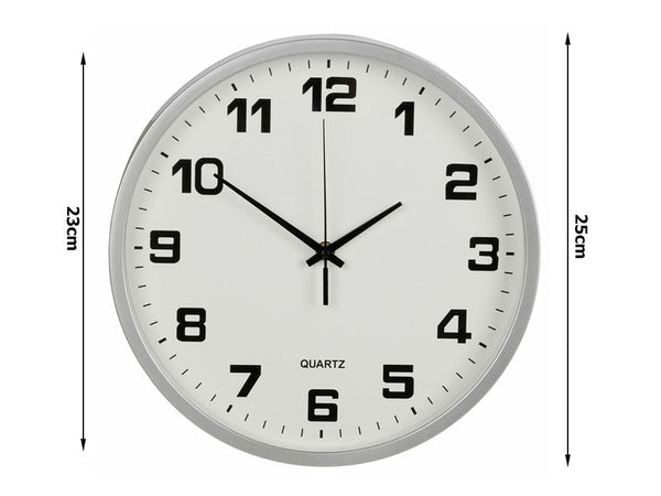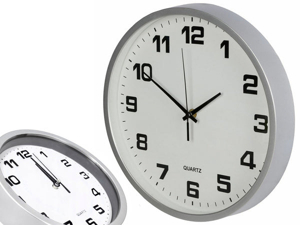 ✅ Lengvai įskaitomas ✅ Lengva surinkti ✅ Turi kabliuką, skirtą pakabinti, pvz., ant sienos ✅ Skaičiai: Romėniški skaitmenys ✅ Maitinimo šaltinis: Baterija: 1x AA baterija (nepridedama) ✅ Spalva: sidabrinė ✅ Laikrodžio skersmuo: 25 cm ✅ Ciferblato skersmuo: 23 cm ☑️ Naujas gamyklinis sieninis laikrodis ☑️ Originali pakuotė