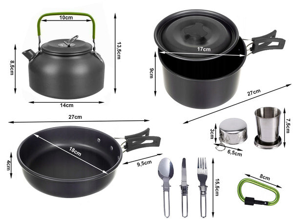 Pažinkite Stovyklavimo indų rinkinį kempingo virdulį ir keptuvę 18in1, kuris yra idealus sprendimas tiems, kurie mėgsta nuotykius gamtoje. Šis rinkinys suteiks jums galimybę patogiai gaminti ir mėgautis skaniais patiekalais bet kur ir bet kada.