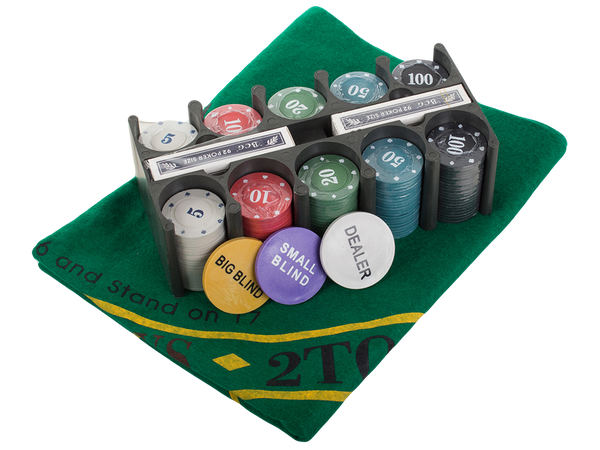- Kilimėlis iki 6 žaidėjų: Specialiai sukurtas pokerio kilimėlis leidžia žaisti iki šešių žaidėjų tuo pačiu metu. Jos matmenys yra 58 cm x 92 cm, todėl jis puikiai tinka bet kuriai stalai.