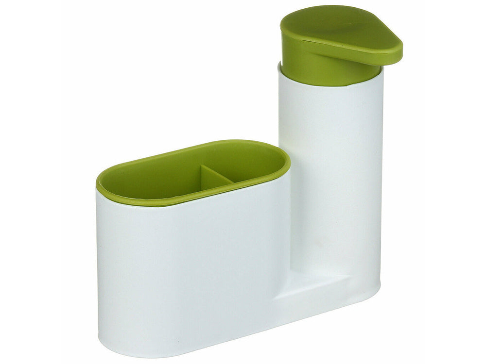 Virtuvės dozatorius organizatorius muilo skystis kempinė – tai stilingas ir praktiškas sprendimas, skirtas organizuoti jūsų plovimo reikmenis tiek virtuvėje, tiek vonios kambaryje. Su šiuo daugiafunkciniu įrenginiu galėsite efektyviai išnaudoti erdvę už kriauklės, o jo modernus dizainas su šviesiomis spalvomis ir žaliais akcentais puikiai įsilies į bet kokį interjerą.